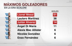 2026世界杯投注app下载-斯卡洛尼执教下阿根廷队进球榜:梅西51球第一,阿尔瓦雷斯第三